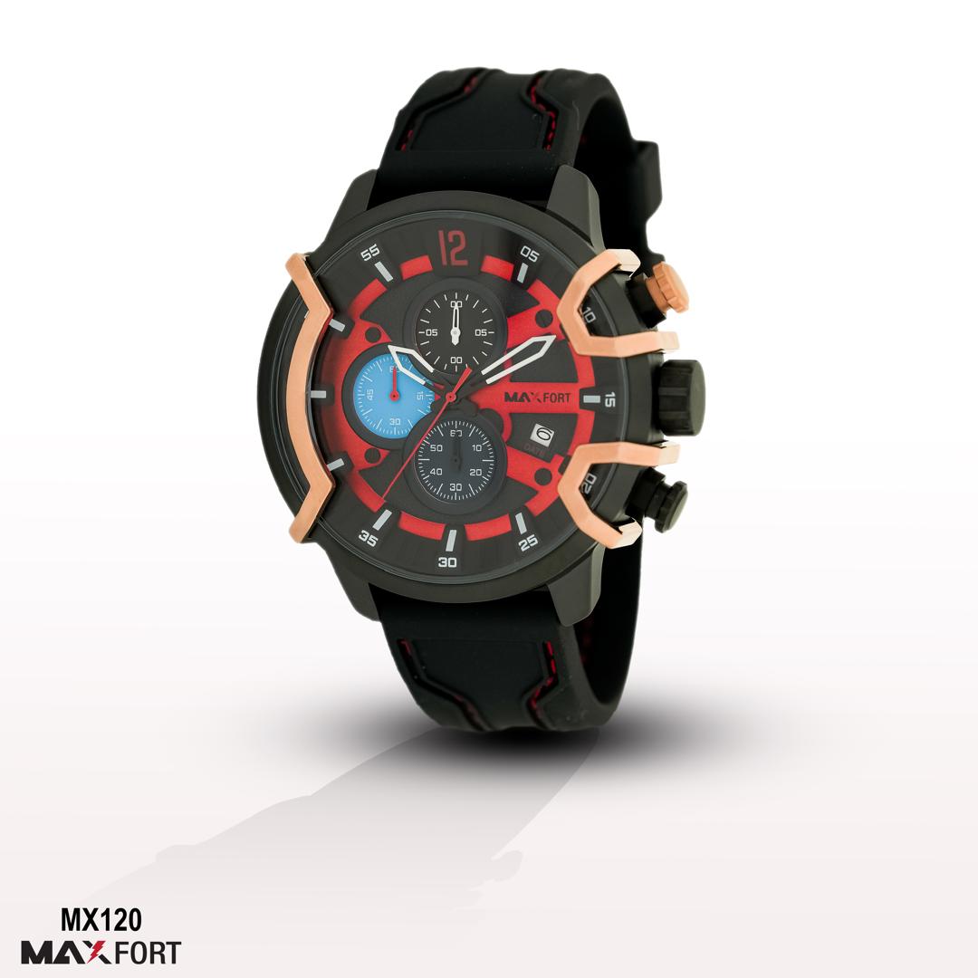 ساعت اسپرت اصل مردانه MAXFORT مدل MX120 قرمز مشکی نارنجی