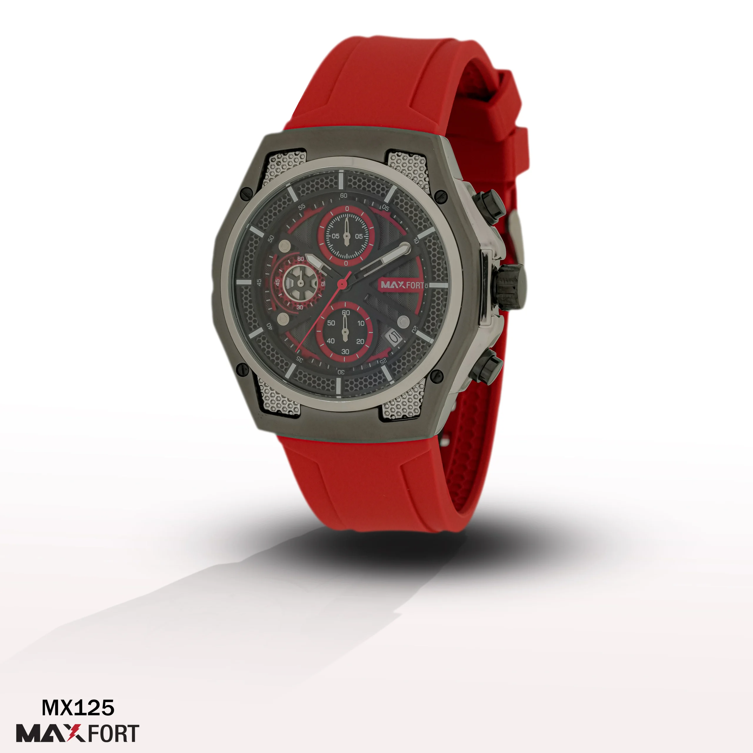 ساعت اسپرت سه موتوره مکس فورت MAXFORT مدل MX125 صفحه مشکی با بند رابر (سیلیکونی)قرمز)کورنوگراف