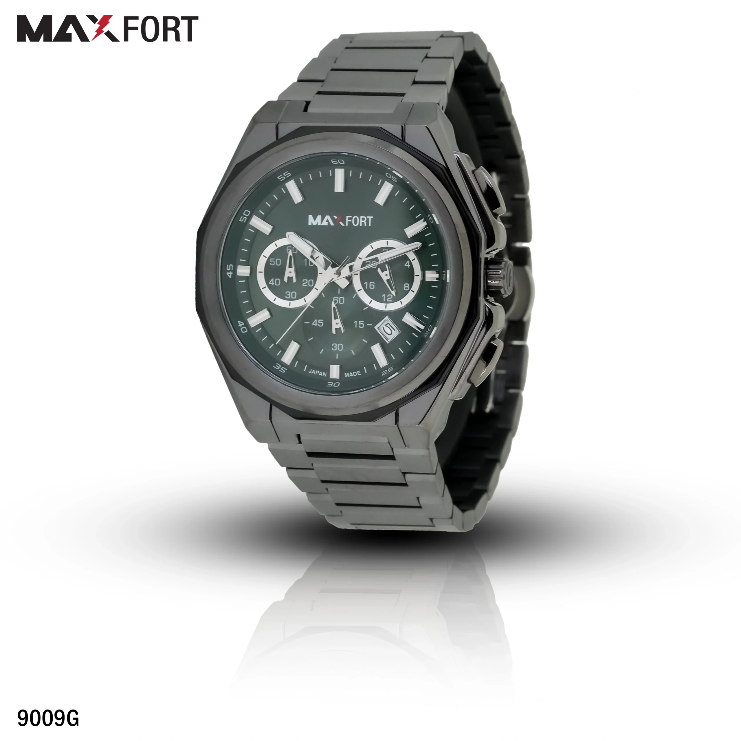 ساعت مچی مردانه مکس فورت MAXFORT رفرنس 9009G بند استیل زغالی و صفحه یشمی
